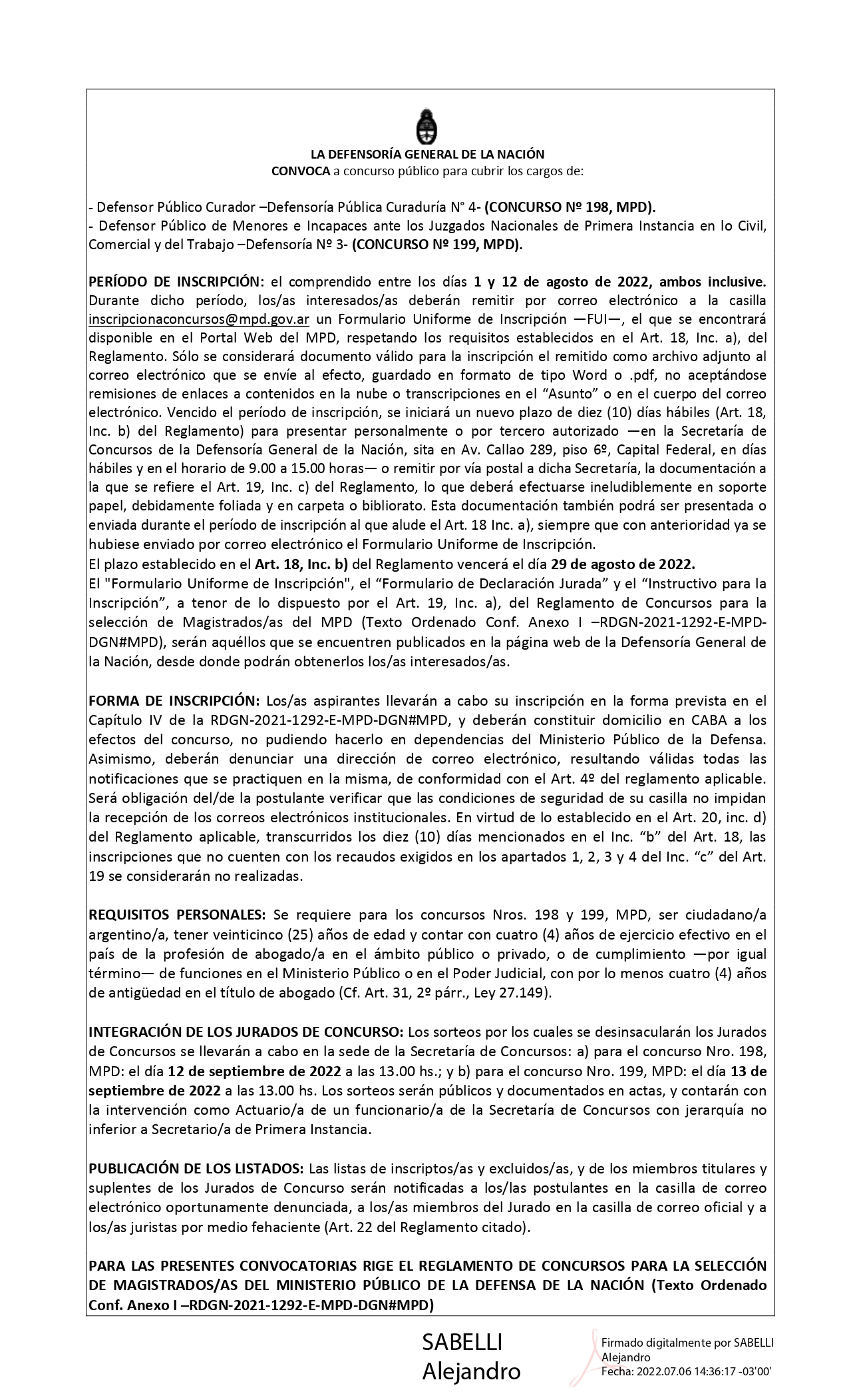 Es para cubrir los cargos de Defensor Público Curador y Defensor Público de Menores e Incapaces.