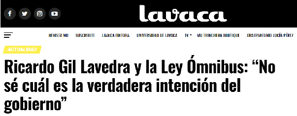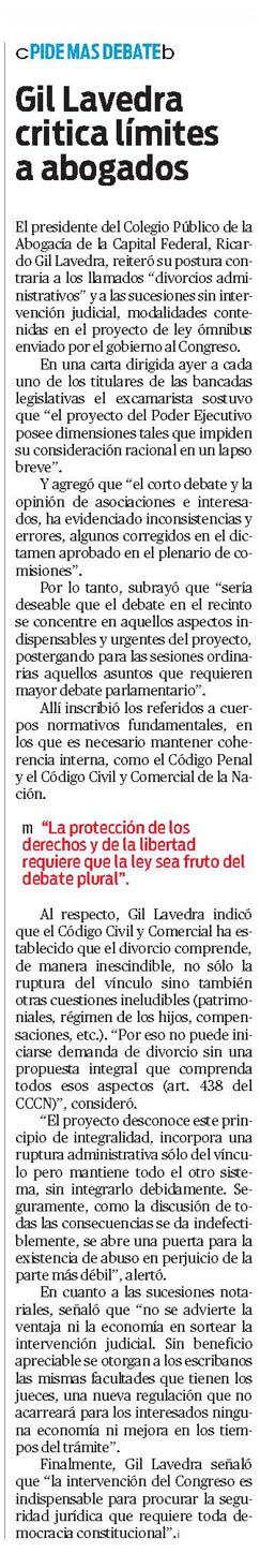 LEY ÓMNIBUS: GIL LAVEDRA REITERÓ SU OPOSICIÓN A LOS CAMBIOS EN DIVORCIOS Y SUCESIONES
