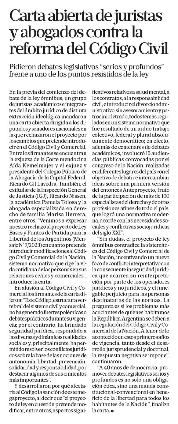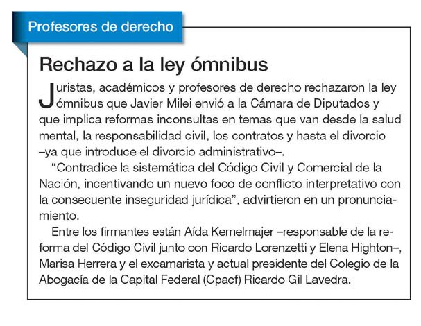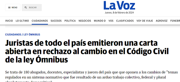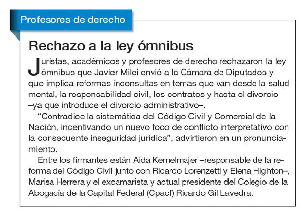 Juristas de todo el país emitieron una carta abierta en rechazo al cambio en el Código Civil de la ley Ómnibus