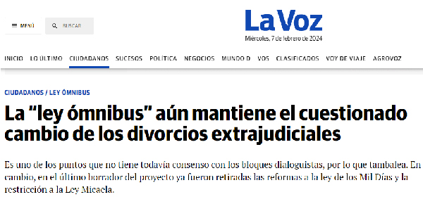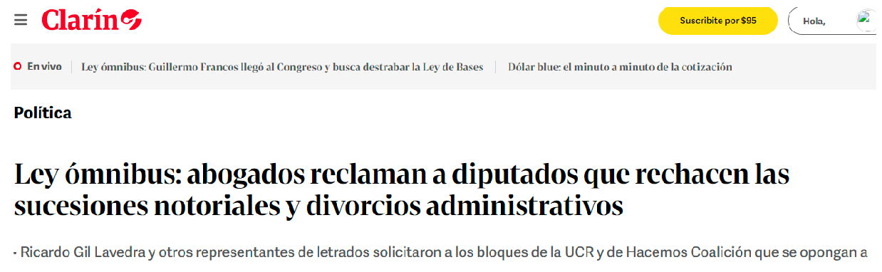 LEY ÓMNIBUS: ABOGADOS RECLAMAN A DIPUTADOS QUE RECHACEN LAS SUCESIONES NOTORIALES Y DIVORCIOS ADMINISTRATIVOS