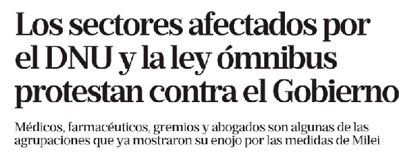 Los sectores afectados por el DNU y la ley ómnibus protestan contra el Gobierno
