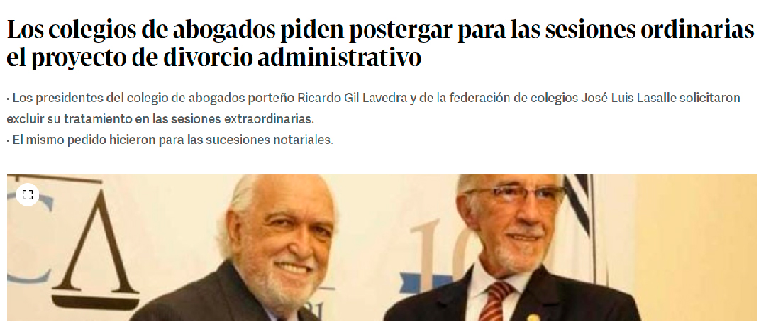 Los colegios de abogados piden postergar para las sesiones ordinarias el proyecto de divorcio administrativo