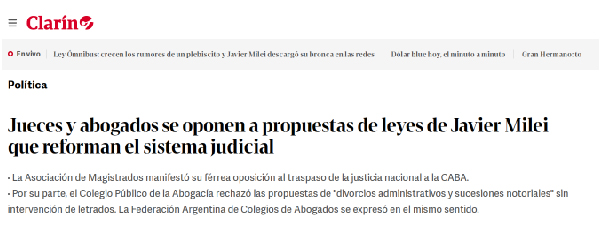 Jueces y abogados se oponen a propuestas de leyes de Javier Milei que reforman el sistema judicial
