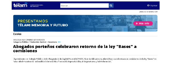 En el mes de enero, el Colegio Público de la Abogacía de la Capital Federal, con Ricardo Gil Lavedra al frente, caminó, golpeó puertas, dialogó, tomó el micrófono, atendió a los medios, y por encima de todo, siguió fiel a su compromiso, defender las incumbencias profesionales de los abogados y las abogadas. Así seguiremos y te invitamos a continuar juntos en esta senda.
