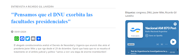 "Pensamos que el DNU exorbita las facultades presidenciales"