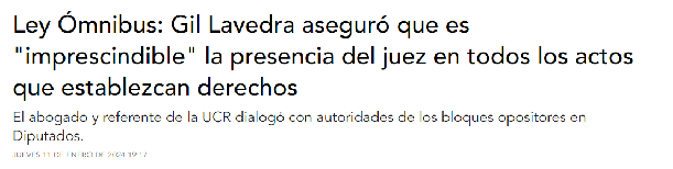 Ley Ómnibus: Gil Lavedra aseguró que es "imprescindible" la presencia del juez en todos los actos que establezcan derechos