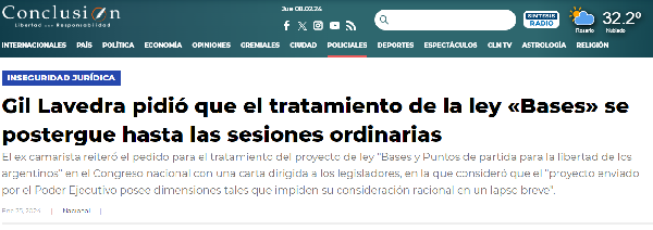 08/01/2024 La Nación – Nota – Política – Pag. 8