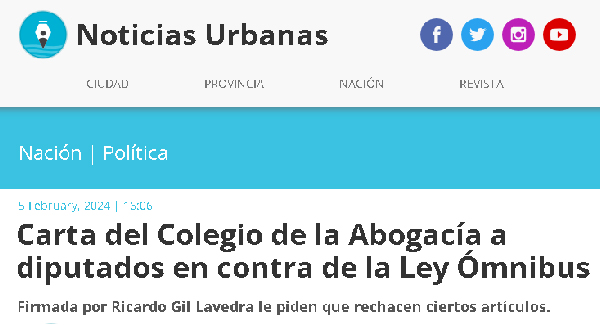 Carta del Colegio de la Abogacía a diputados en contra de la Ley Ómnibus