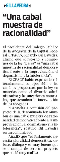 Abogados porteños celebraron retorno de la ley "Bases" a comisiones
