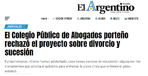 El Colegio Público de Abogados porteño rechazó el proyecto sobre divorcio y sucesión