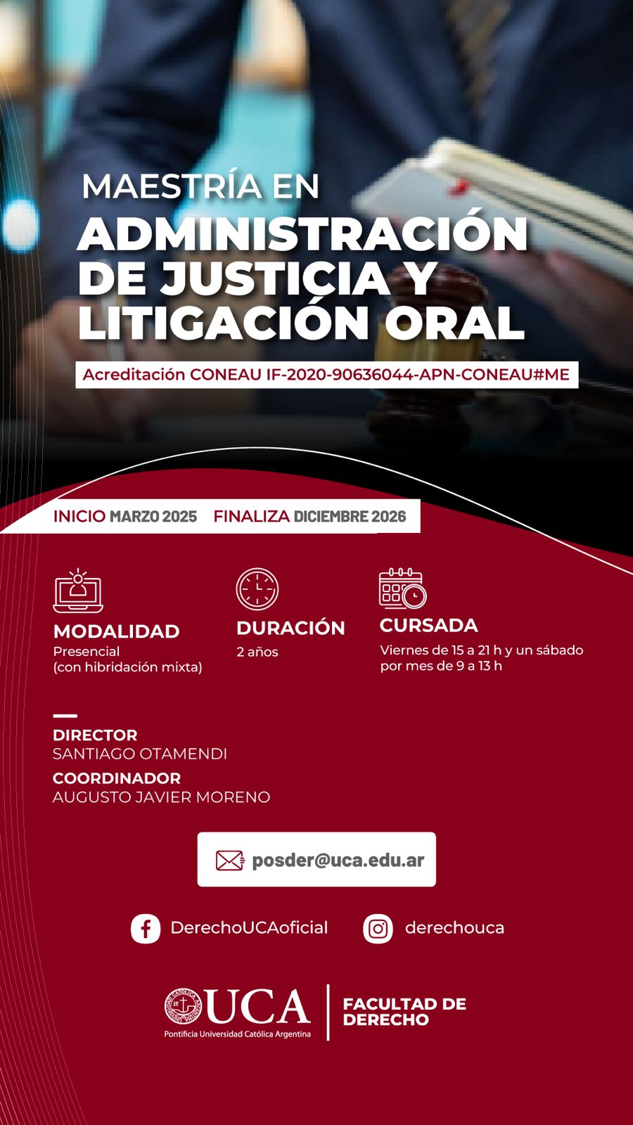 El Colegio Público de la Abogacía de la Capital Federal, en conjunto con la Facultad de Derecho de la Universidad Católica Argentina (UCA), ofrece 5 medias becas para participar en la Maestría en Administración de Justicia y Litigación Oral.