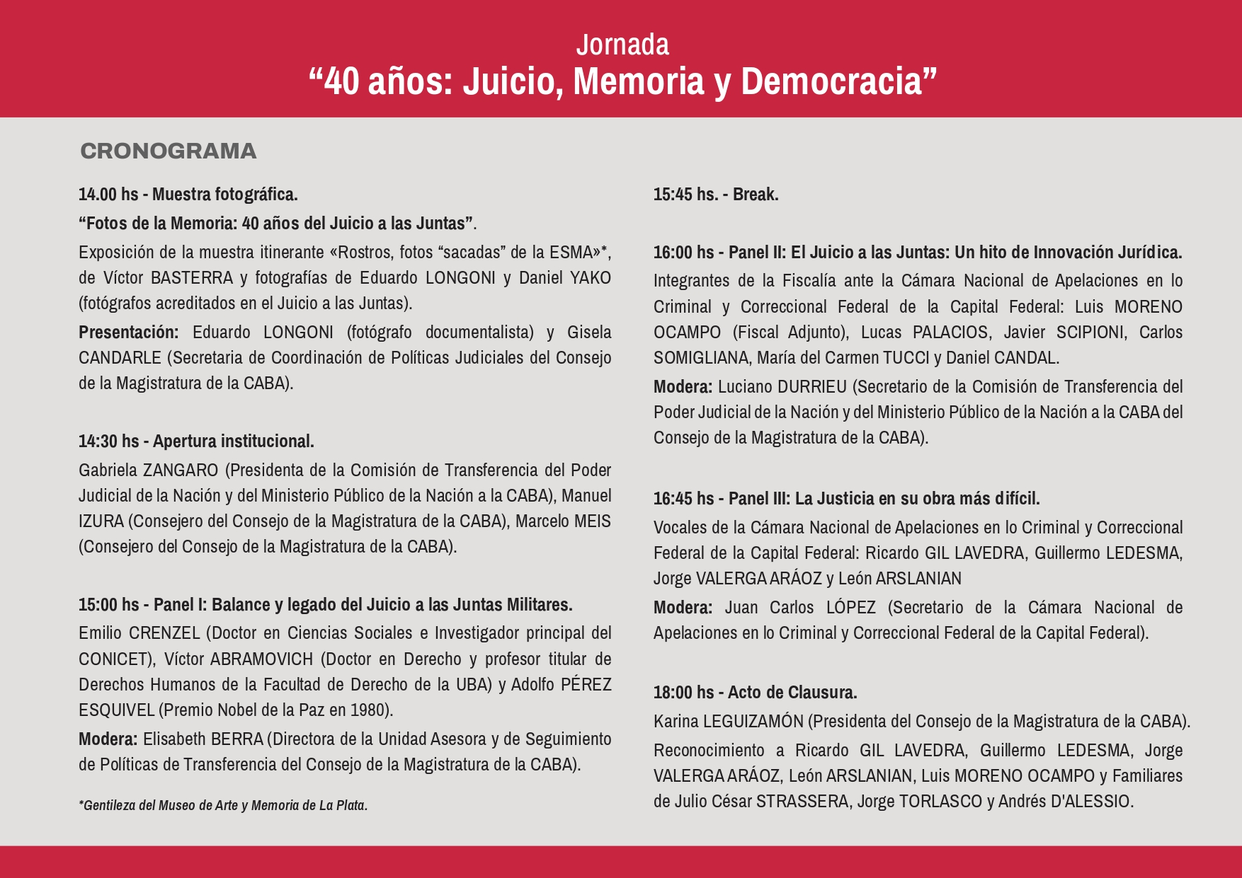 Muestra Fotográfica: 40 años del Juicio a las Juntas - Martes 9 de diciembre - 14 hs. - Salón Dorado (Legislatura de la CABA)