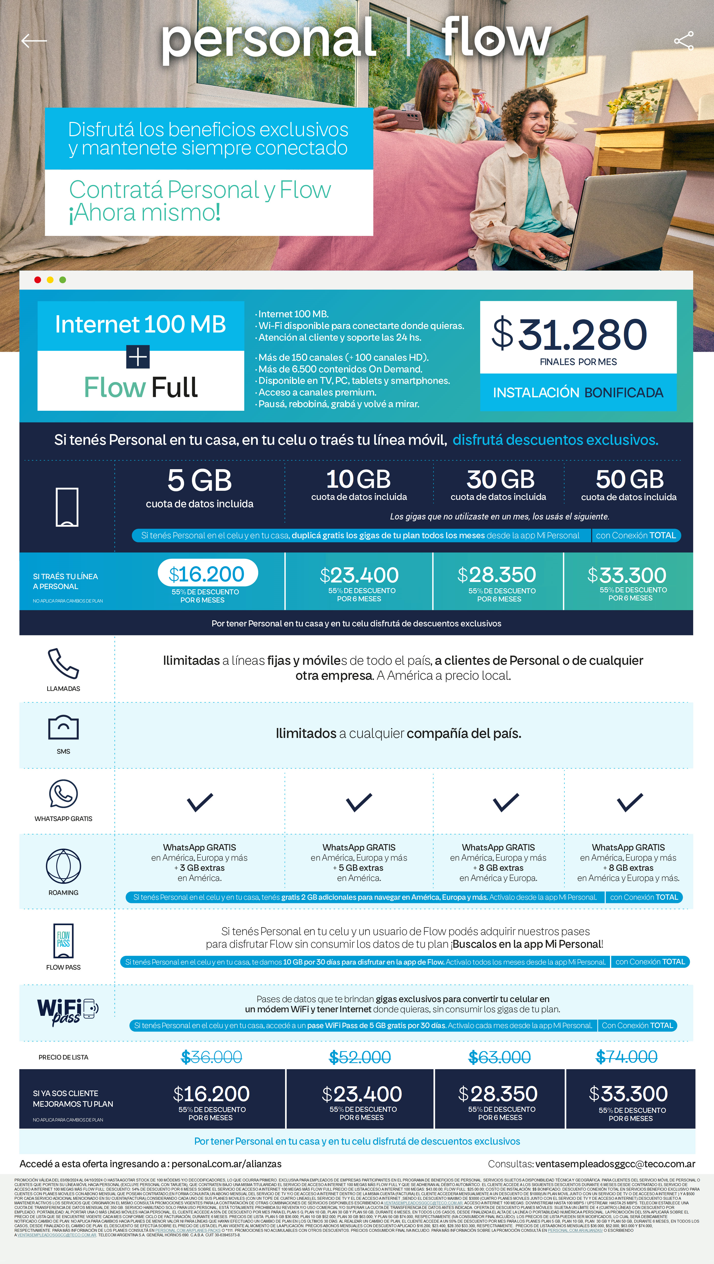 Promociones y descuentos en servicios de celular, internet y cable. Acceda a beneficios para usted y su grupo familiar.