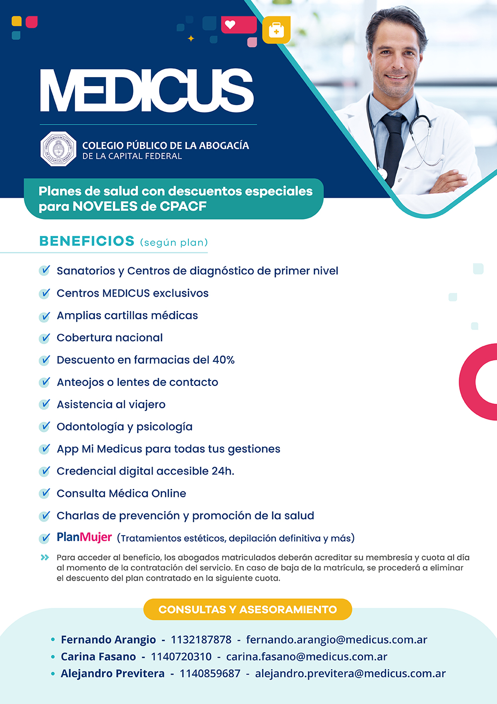 Planes de Salud con Descuentos Especiales para Matriculados/as del CPACF y su Grupo Familiar.