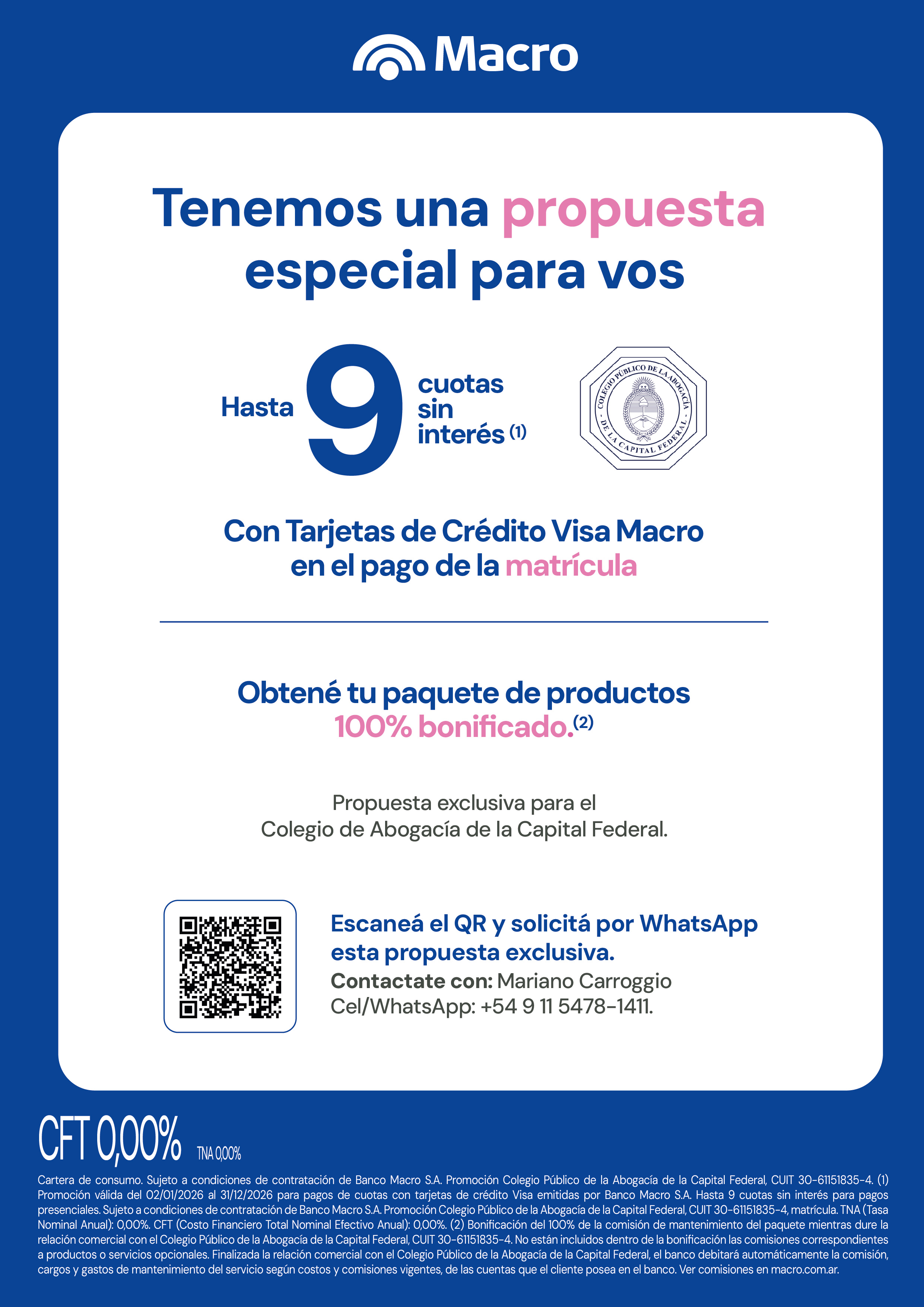 Con tarjetas VISA seleccionadas, aboná matrícula anual y derecho de reactivación en hasta 9 cuotas sin interés.