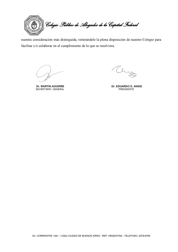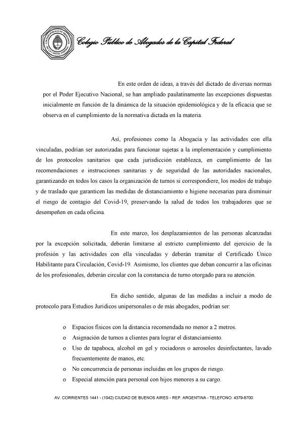 EL CPACF SOLICITÓ LA REAPERTURA DE LOS ESTUDIOS JURÍDICOS Y LA LIBRE CIRCULACIÓN DE ABOGADOS