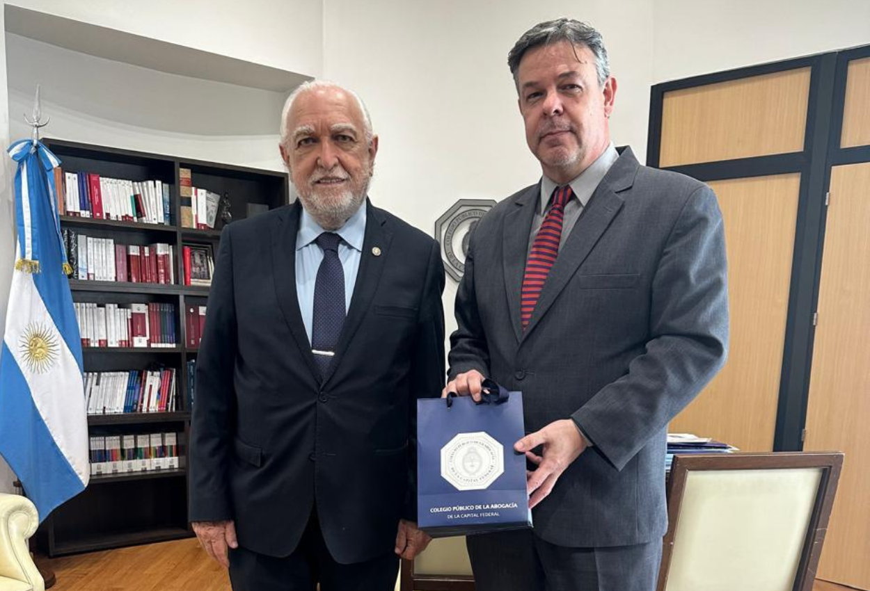 El Dr. Ricardo Gil Lavedra, Presidente del Colegio Público de la Abogacía de la Capital Federal, se reunió con el Dr. Guillermo Manuel Zamora, Presidente del Colegio de Abogados de Trelew, para avanzar en una agenda conjunta que promueva la defensa de las incumbencias profesionales y el desarrollo de programas de capacitación permanente.